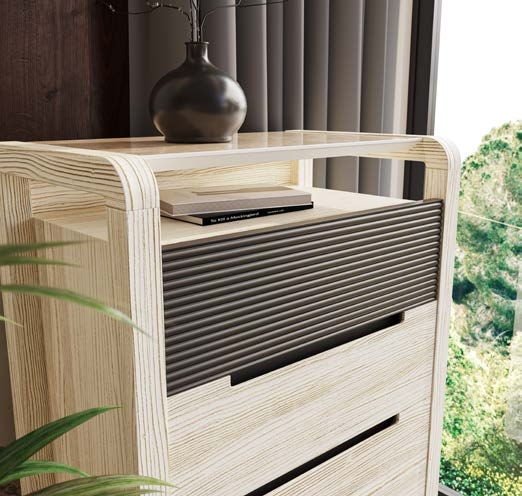La terminación Texturada consiste en aplicar la técnica de ‘chorro de arena ó arenado’. Con esta técnica de consigue un efecto de envejecimiento de la madera al devastar la parte más blanda y dejar la veta, que presenta una mayor dureza, en relieve.