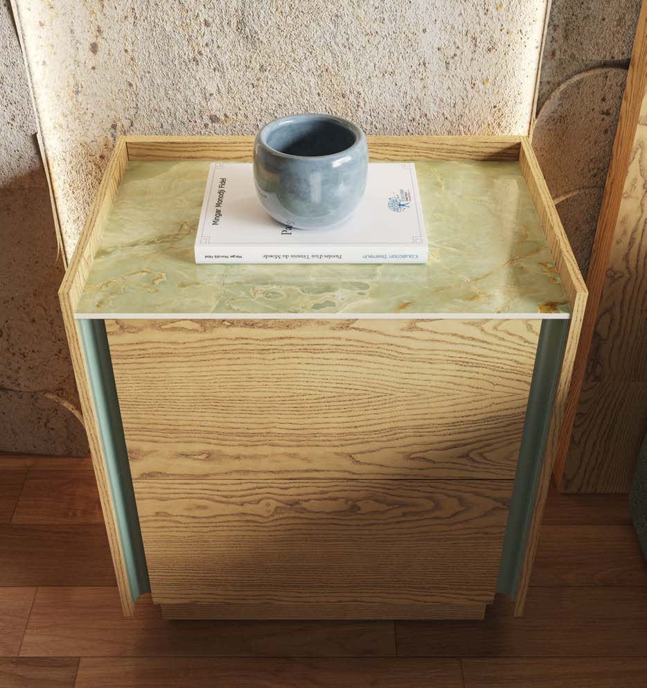Incremento por tapa de piedra compacta o porcelánico de 95.-€ sobre el Pvp en el caso de la mesilla de 55cm. y de 115.-€ en el caso de la mesilla de 70cm.