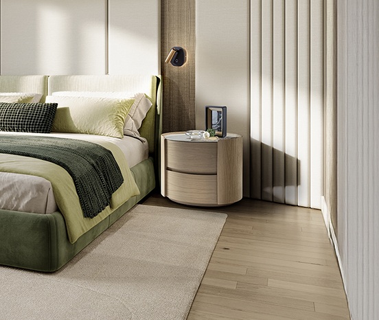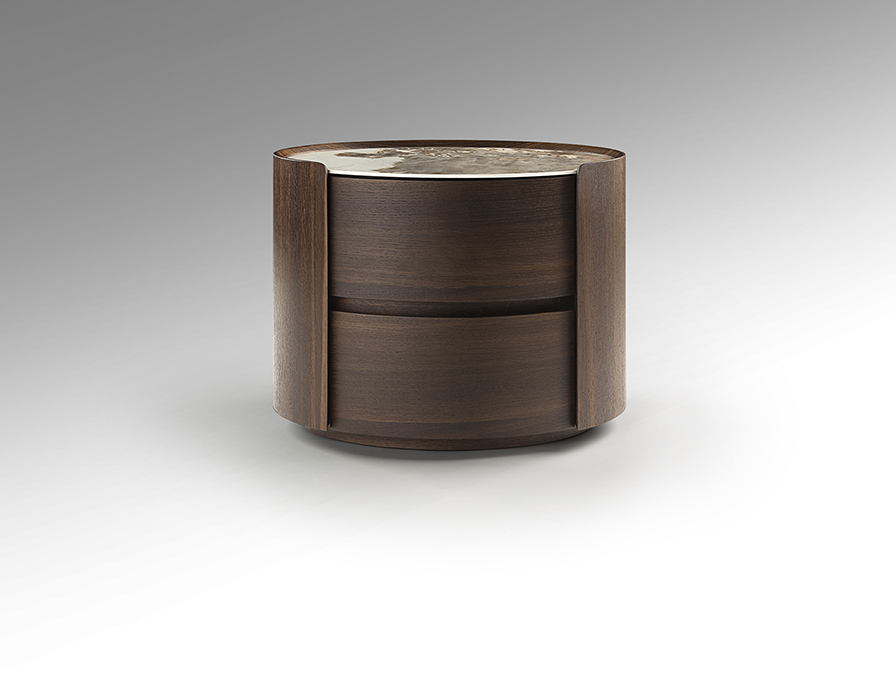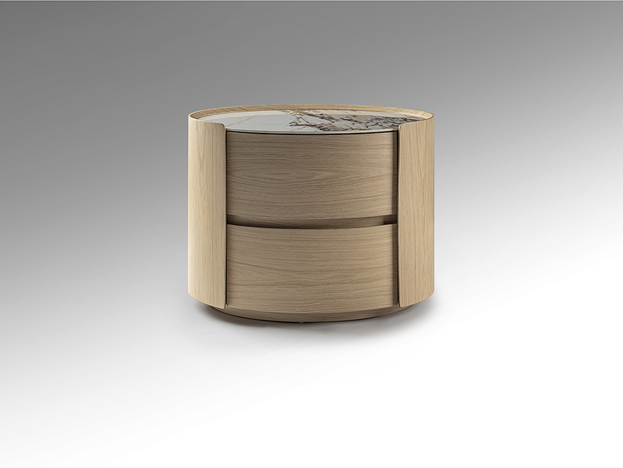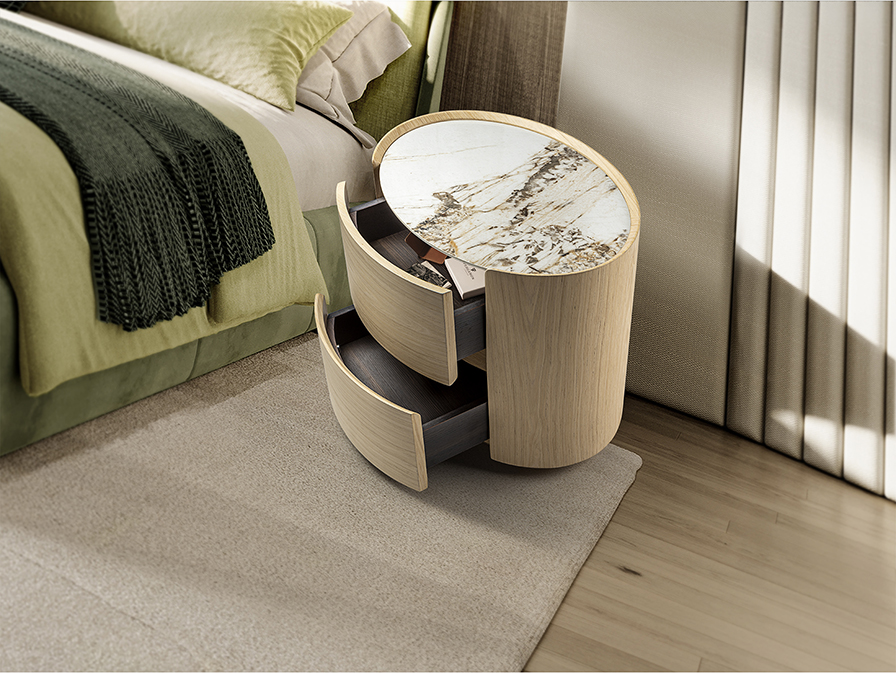 Mesita de noche ovalada con dos cajones