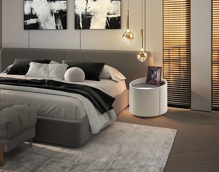- Mesita de noche redonda con un cajón