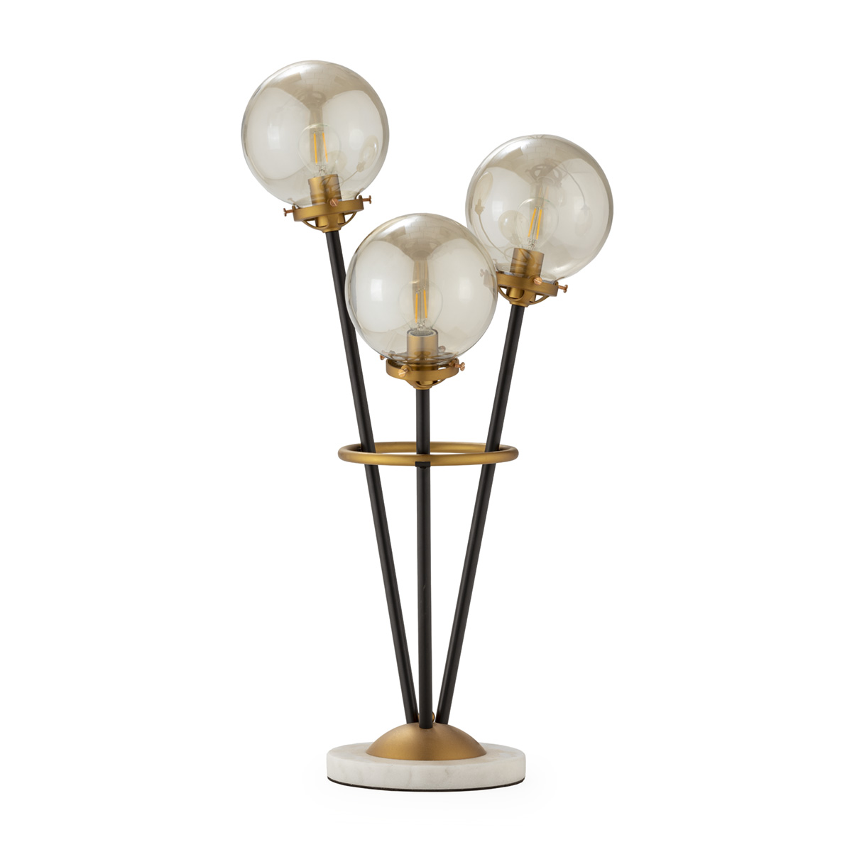 Lámpara de mesa con 3 brazos y 3 bolas de cristal