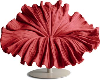 Hecha de microfibra italiana, cada cojín floral está cuidadosamente cosido a mano y se apoya sobre una base de acero. Delicada y a la vez escultural, la Bloom lleva la belleza del jardín al interior.