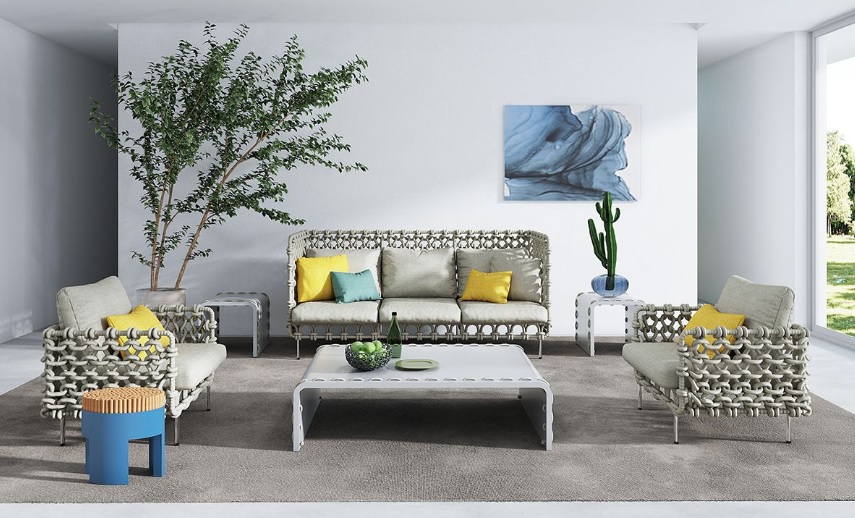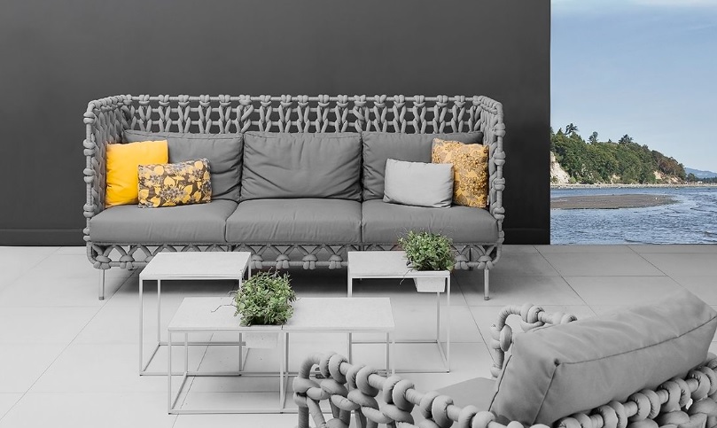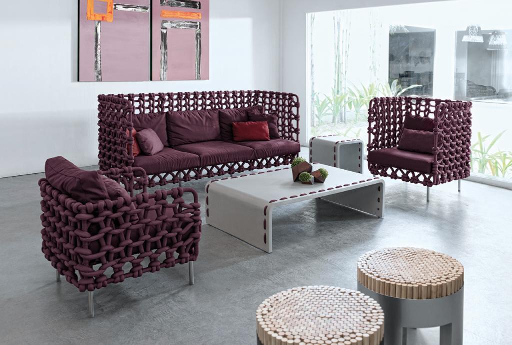 Suaves tubos de espuma de tela se tejen delicadamente y se unen sobre una robusta estructura de acero.