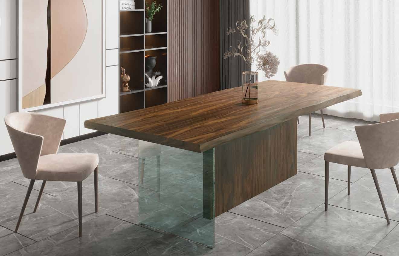 Material: Chapa natural con cantos macizados y cristal templado. Grosor de la tapa 6 cm.