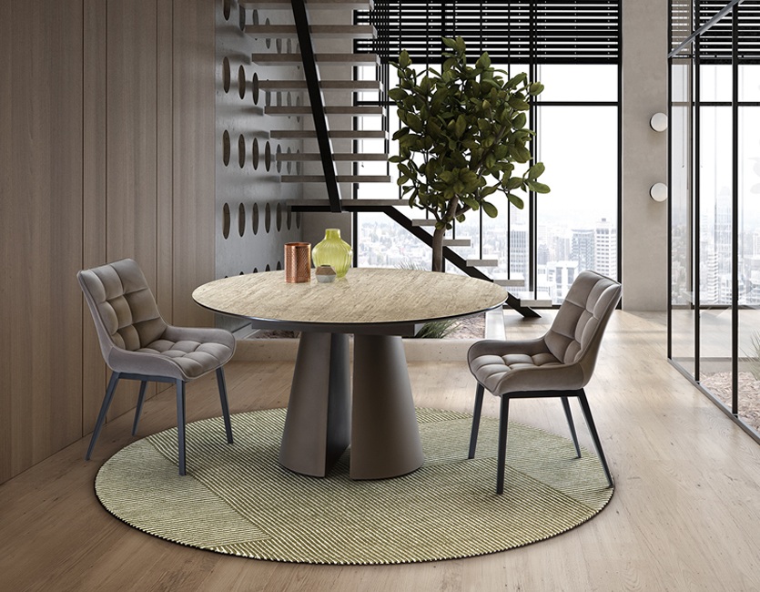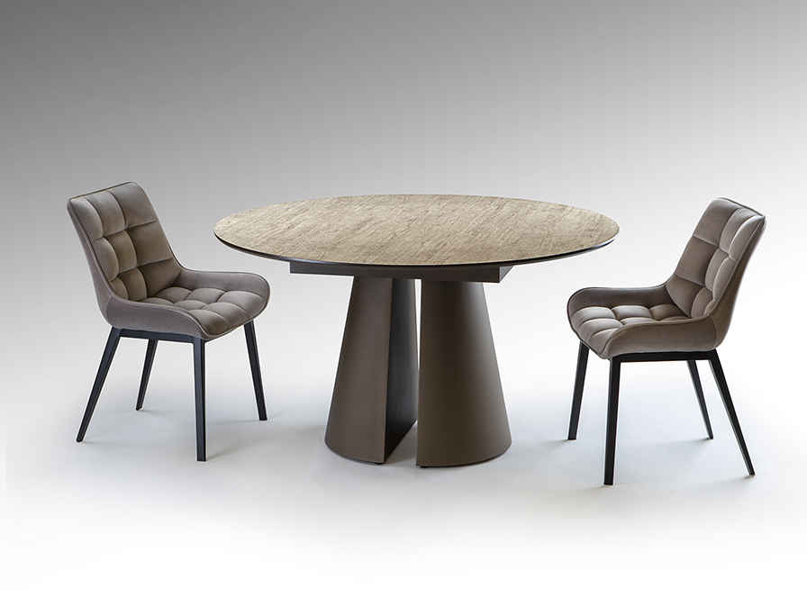 Material: estructura realizada en metal y MDF acabado marrón óxido. Tapa de MDF con superficie melaminica de alta resistencia, acabado travertino, con cantos en marrón óxido.