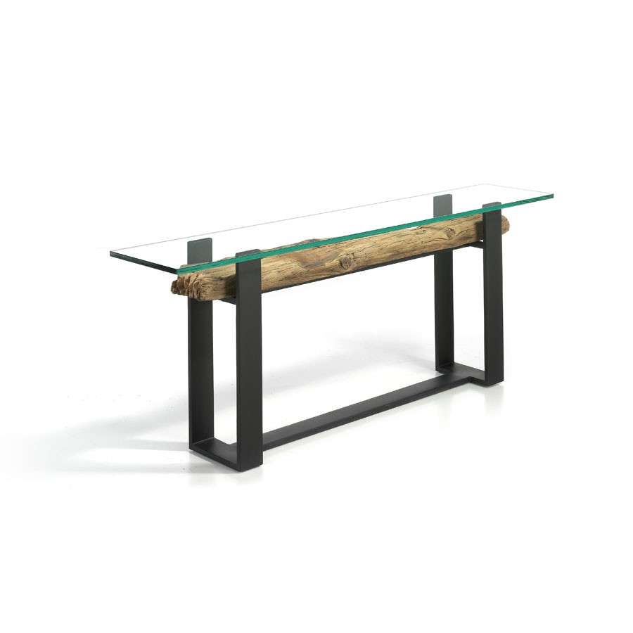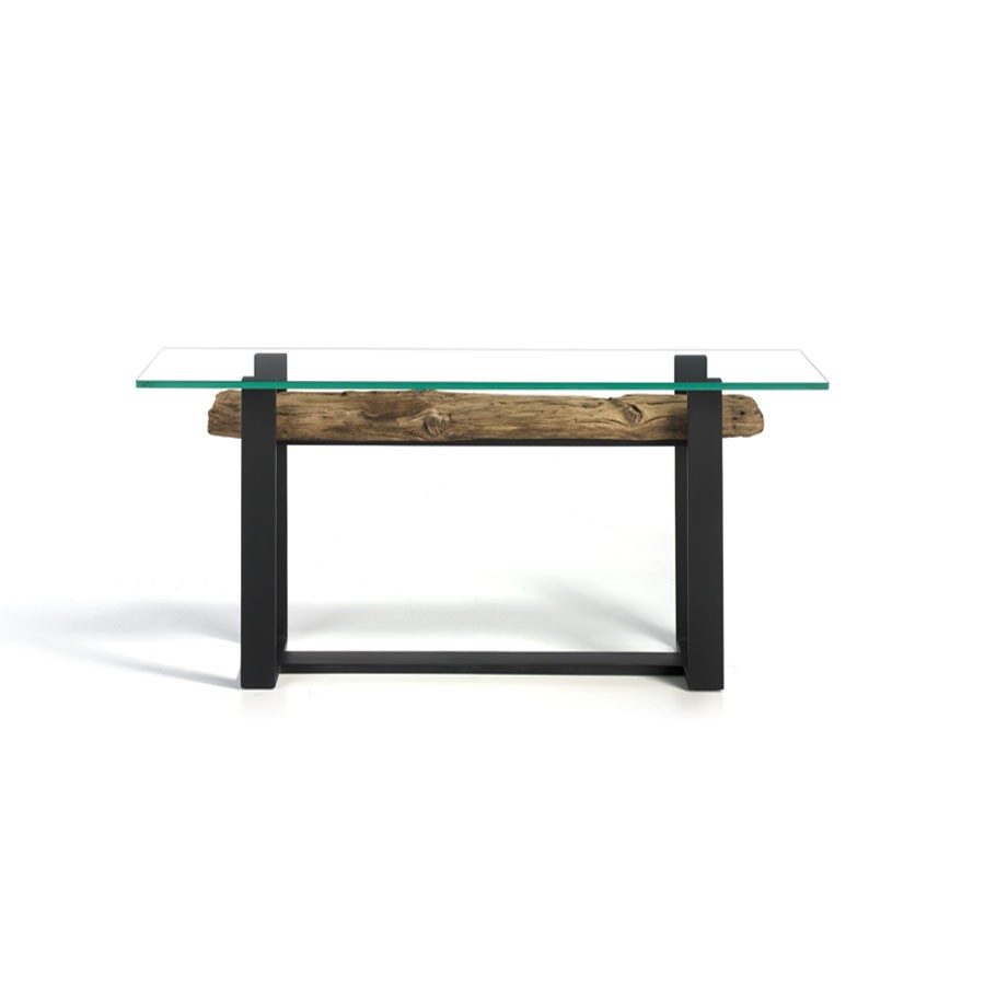Material: Viga de madera, cristal y hierro lacado.