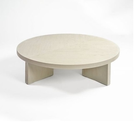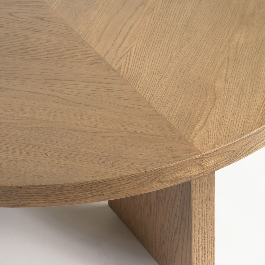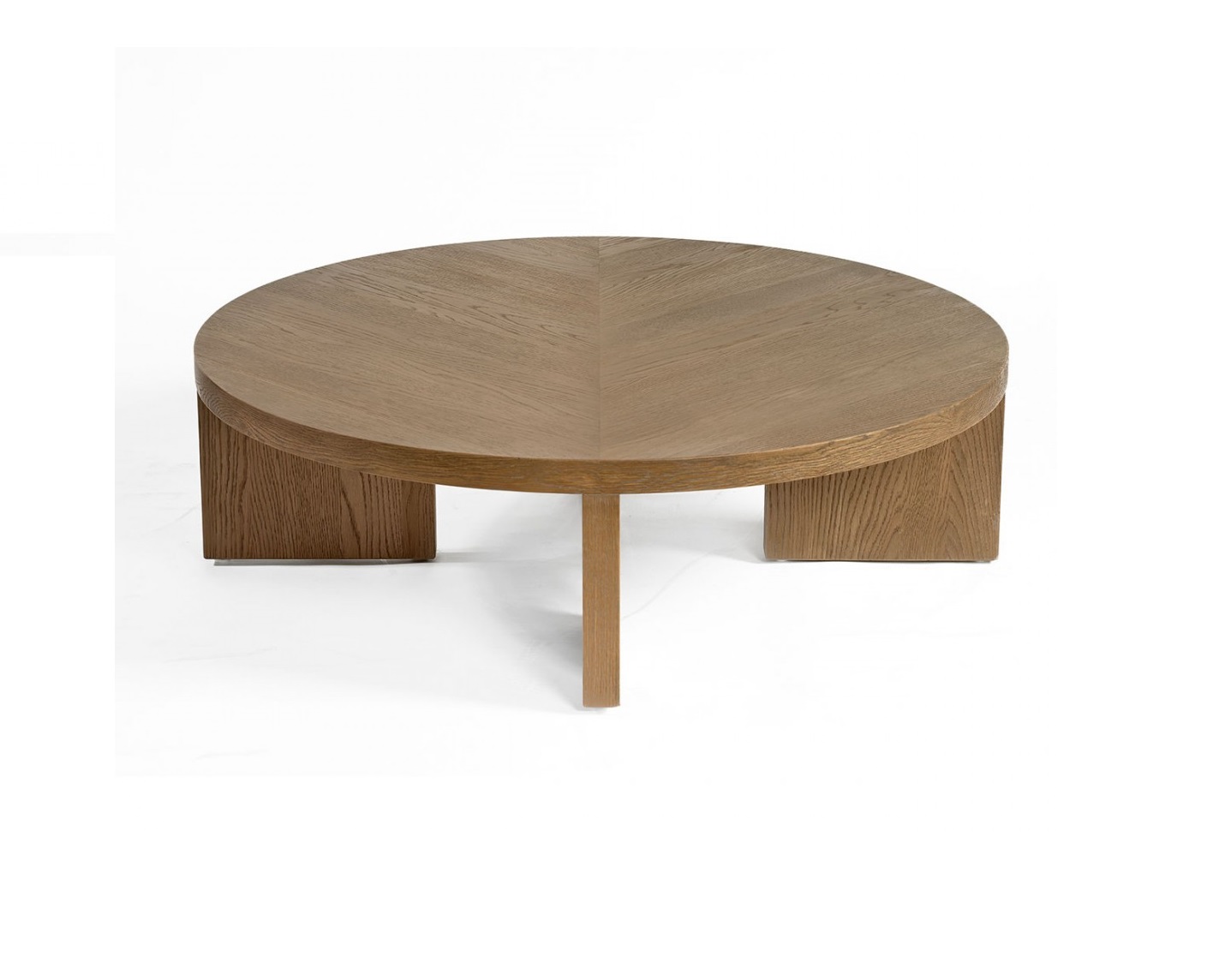Mesa de centro redonda de madera natural de roble con 4 patas.