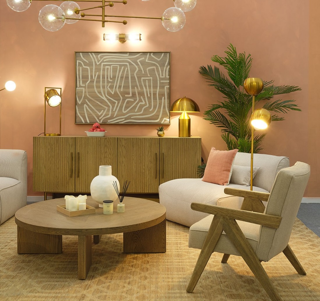 Un toque natural, chic de estilo moderno y milimalista para el salón o sala de estar.