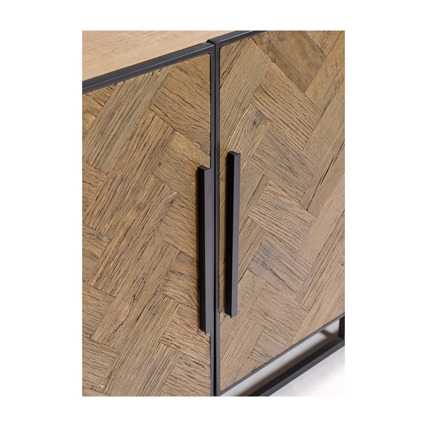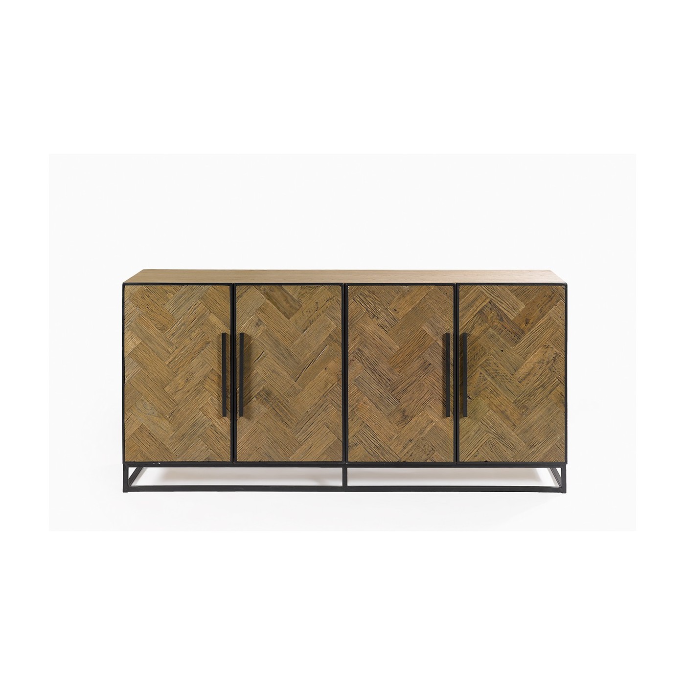 Aparador de madera de roble con patas y tiradores de metal de color negro. Inspirado en las lineas actuales donde la simpleza es lo más importante y la elegancia van cogidas de la mano.